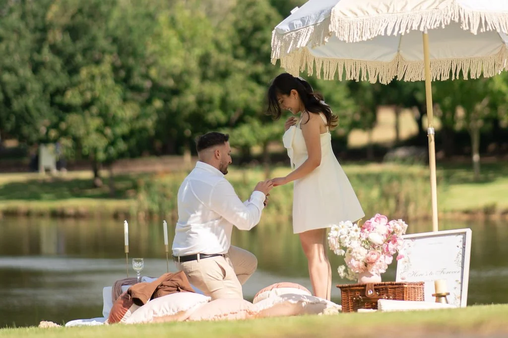 Garden proposals feel intimate and intentional. Surrounded by greenery, blooms, and soft natural textures, this backdrop creates a storybook atmosphere — without needing dramatic scenery.